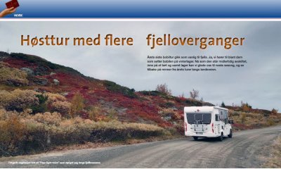 Underveis var innom og passerte; Gausdal "Peer Gynt"-veien, Espedal, Gudbrandsdalen, Ottadalen, Valdresflya, Valdres, Golsfjellet, Hallingdal og Haglebufjellet. Hvorfra det er mulig å gjøre avstikkere underveis om man ønsker å oppleve mer av Norges dalfører og fjelloverganger. Artikkelen stod i Bobilen.